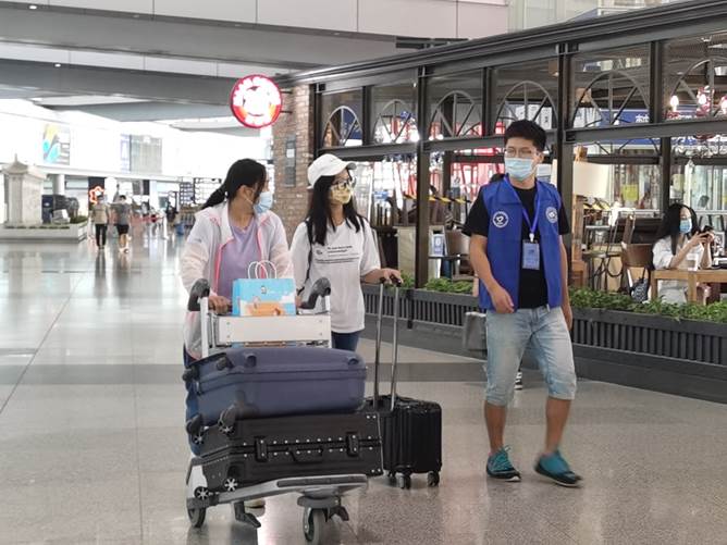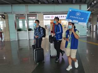 进入机场后,迎新志愿者们按照提前分配好的岗位,快速进入工作状态,等待新生的到来。迎新工作如火如荼,到处都是忙碌的身影。时钟缓缓转动,时刻表上的时间一个个接近,到达列表上的状态也一个个改变,一位位新生带着初来乍到的懵懂和羞涩,随着迎新志愿者的脚步走向北航这个新的起点,这个自豪而温暖的新港湾。