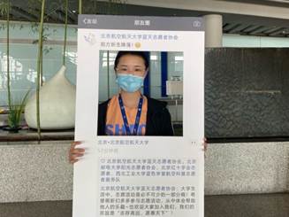 在等待的过程中,为了让新生了解网络空间安全知识,志愿者们提前准备了有关网络安全的小知识问答以供同学们参与互动。新生们全神贯注地完成手上的题目,全对的同学还获得了初入北航的第一份小奖品。此外,志愿者们准备的展板和手幅也备受同学喜爱,拍照留影纪念大学报道之旅。