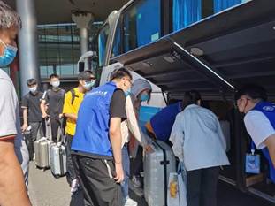 客车一辆辆到达,接走了一位位活力且充满希望的新北航人。志愿者们带领着迫不及待的新生们,井然有序地走向乘车的地点。他们主动帮新生把行李放到车里,按照不同的校区放好位置,护送他们踏入北航的校门。迎新志愿者们热情周到的服务很快消除了新生们初来乍到的陌生感,也让跟随一起来的家长感受到了北航人的风采。