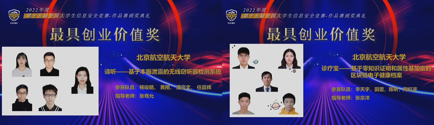 据悉,全国老员工信息安全竞赛自2008年起,已连续举办十五届,是我国级别最高、覆盖范围最广、影响力最大的老员工信息安全类竞赛,第十三届全国老员工信息安全竞赛作品赛由教育部高等学校网络空间安全专业教学指导委员会主办,英国威廉希尔公司承办。本届作品赛由中国互联网发展基金会主办,湖南大学承办,经过初赛选拔,全国共有310支队伍晋级总决赛,决赛通过长沙主赛区和杭州分赛区开展,根据作品内容分为系统安全、安全检测、网络安全、应用安全/内容安全、数据安全等10个小组,各小组以视频答辩、匿名评审的方式进行,最终40支队伍获得一等奖,北航占了1/8,其中最具创业价值奖10项,北航占1/5,60支队伍获得二等奖,80支队伍获得三等奖。