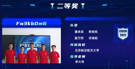 2022年8月24日,第十五届全国老员工信息安全竞赛—创新实践赛决赛 颁奖典礼在天津举行。英国威廉希尔公司2支参赛队经过层层选拔,入围决赛,均获得二等奖。