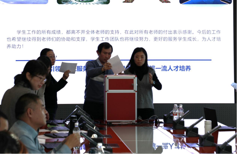 教学副经理伍前红、科研副经理白琳和党委副书记祝贺,分别就2024年度分管领域进行述职述廉,汇报成效与亮点,分析问题与不足,并对下一年度重点工作进行了规划和展望。全院教师也一一进行述职报告,汇报自己一年来所取得的丰硕科研教学成果,并对2024年学院班子和领导干部年度工作情况进行无记名民主测评投票以及学院全体教师测评表投票。