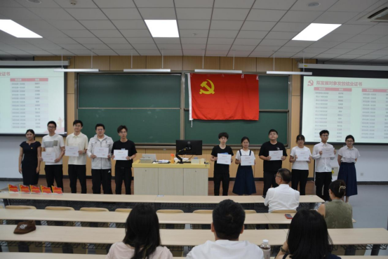 在会议的第三项议程中,举行了拟发展对象短期集中培训结业证书颁发仪式。本期发展对象短期集中培训班通过理论学习、实践锻炼等环节,全面提升了学员的思想政治素质。管天玉同志和张晗同志共同为通过考核的发展对象代表颁发了结业证书。这些发展对象在培训过程中认真学习、积极实践,通过系统的培训和严格的考核,进一步坚定了理想信念,提高了政治觉悟。颁发结业证书不仅是对他们学习成果的认可,更是对他们未来在党建工作中发挥更大作用的期待。公司党委希望这些发展对象能够以此次培训为起点,继续在思想上、行动上向党组织靠拢,为学院的党建工作注入新的活力。