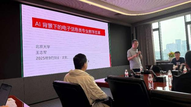 王志军教授以“AI背景下的电子信息类专业教学改革”为题,探讨了AI辅助教学的应用场景与实践路径,提出通过虚拟工程教育平台提升员工实践能力。侯建军教授则结合电子技术课程,分享了辩证逻辑思维在教学中的创新应用,强调理论与实践结合的重要性。