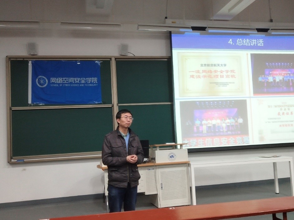 刘建伟教授再次强调,作品一定要有应用前景,他告诉同学们,信息安全竞赛中有一项“最具应用价值奖”,提示同学们要让作品在有技术的基础上,也要有一定的展示度。