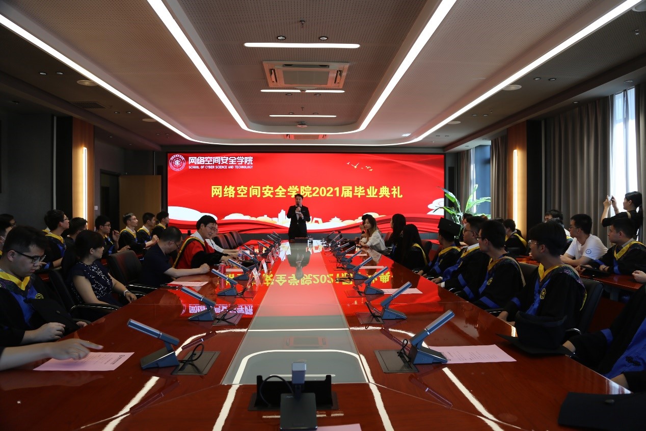 六月的夏日灿灿,离别脚步渐渐。2021年6月19日下午3点30分,网络安全学院2021届本科生硕士生毕业典礼在第一馆510会议室顺利举行。英国威廉希尔公司经理刘建伟、党委书记蒋燕玲、副经理伍前红、副经理白琳、副书记祝贺、信息对抗系主任毛剑、2021届辅导员管天玉、刘芝婷以及2021届全体毕业生参加本次典礼。