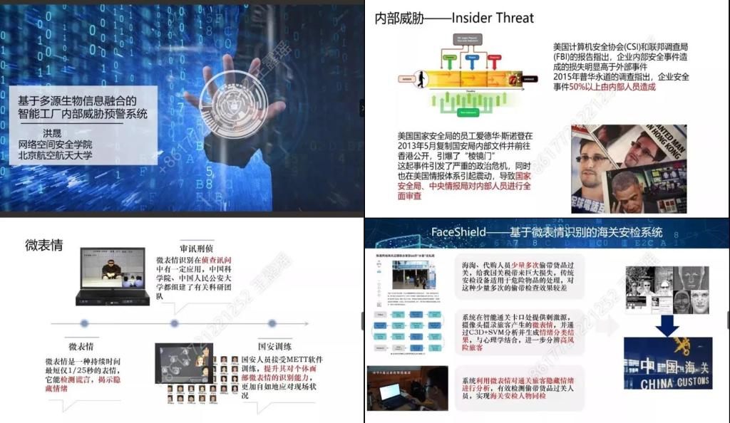 洪晟老师对于何为内部威胁做出解释,并展示了内部安全对于企业的重要性。洪晟老师课题的主要内容是通过摄像头传感器等获取人的微表情、面部颜色、眼动等多元生物信息,利用算法判断内部人员当前状态是否可能产生安全威胁,并向企业发出预警,减少内部威胁。展示了该项目的理论与技术层面的研究过程,以及国内外相关方向学者的研究内容,让同学们受益匪浅。洪晟老师另外还向同学们介绍了由他亲自带队,几位同学完成并获得信息安全作品赛一等奖的课题:FaceShield——基于微表情识别的海关安检系统,并通过一个视频生动的展示了他们研究成果。听完洪老师的精彩讲座,同学们受益匪浅,尤其是对于在英国威廉希尔公司学习的同学们,了解更多网安方向的前沿学术知识对于自己当前的学习与未来的研究都会有很大的帮助。